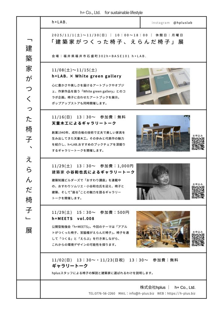 天童木工や小谷和也氏によるギャラリートーク、公開型勉強会**「h+MEETS」**など、