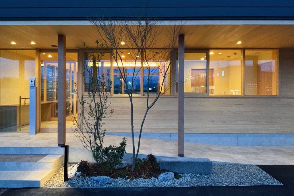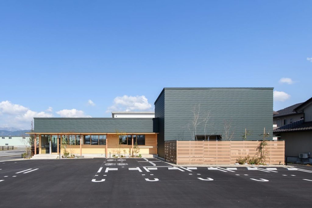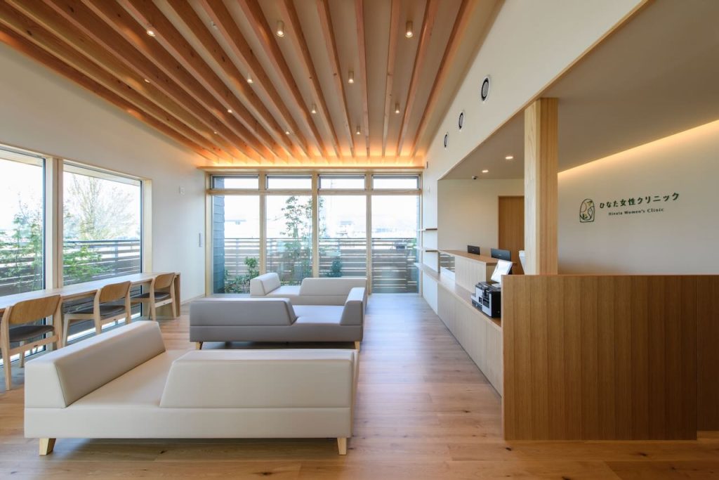 ダークグリーンのガルバニウムの外壁と木目のコントラストが印象的な、福井市東森田の「ひなた女性クリニック」。施主で医師の知野陽子さんに、ご依頼からクリニック完成までの経緯や、現在の所感について伺いました。
