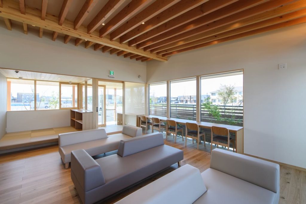 子宮頸がん予防のためのHPVワクチン接種や、乳がん検診の大切さなどはなるべく早いうちに知っておいてもらいたい。だからこそ、啓発のための場所づくりが必要だと思っていました。待合室は気軽に人が集え、多様な使い方ができるようお願いした結果、一面ガラス張りで、自然光が入り込む開放的な雰囲気に。また、大通りに面しているため塀を立て、植栽をしてプライバシーにも配慮してもらいました。椅子や什器なども木製の家具で揃えてもらい、統一感のある空間になりました。患者さんから「待ち時間が苦じゃない」と言ってもらえた時は嬉しかったですね。畳コーナーやおむつ台も設けたので、子どもさん連れの患者さんも気軽に来ていただいています。今後は「プレママクラス」や「パパママカフェ」の開催も予定しています。