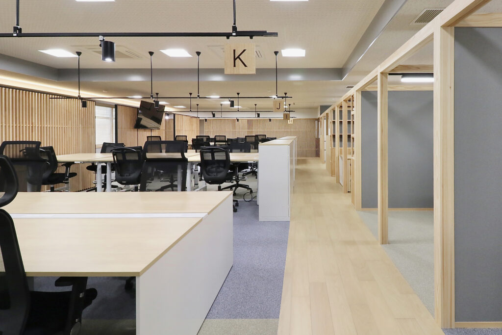 今回の工事は3工区に分け、引越しと施工を交互に行いながら約1年をかけて進行。無機質でグレーだったオフィスは、人の気配や温度を感じられる木質空間へとアップデートされました。